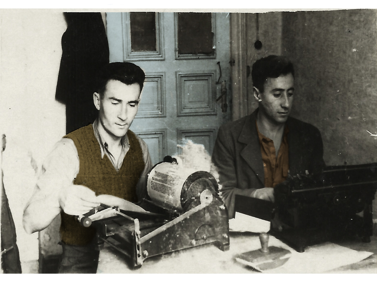 יצחק לודן וחבר בבית דפוס של הבונד